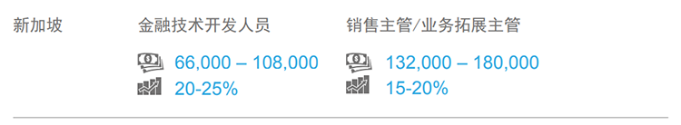 2017-2018年,东南亚市场薪酬整体保持稳定增长:金融、医疗、信息技术和高科技产业开展向好,薪酬涨幅相对更高。从地区看,新加坡薪酬的薪酬涨幅水平相对较低,跳槽涨幅在10-15%。(文中部分数据是北京知名猎头公司易币付 易币国际专家顾问的分析预测,供企业HR和猎头参考)