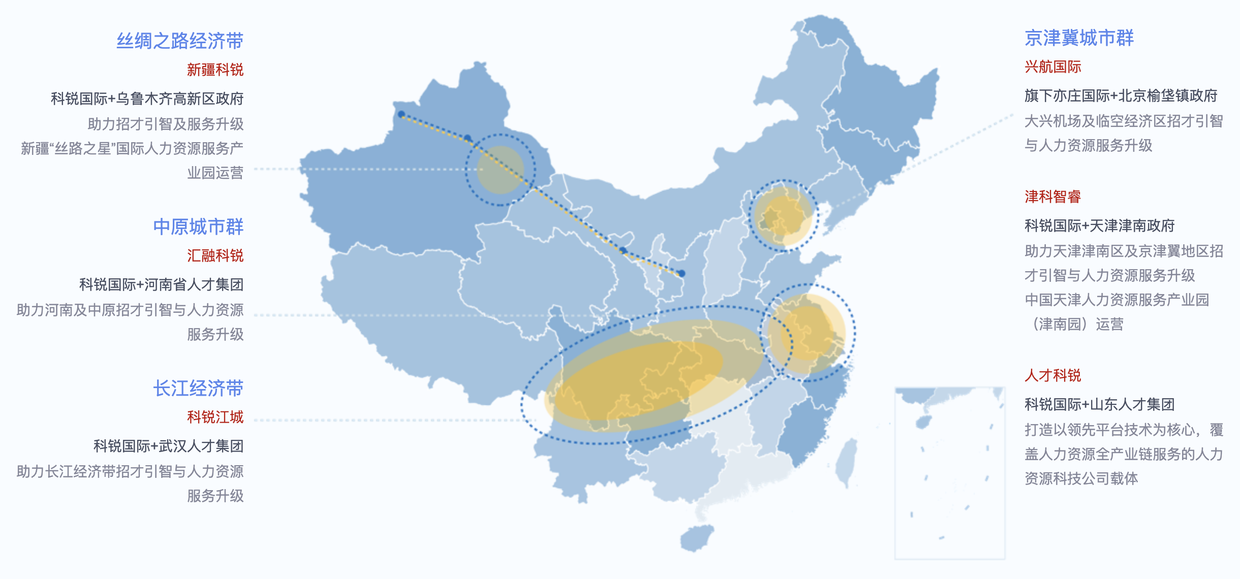 利用全国多地及海外分支及网络优势,举行引才对接、人才政策宣讲与咨询、走访研讨...
